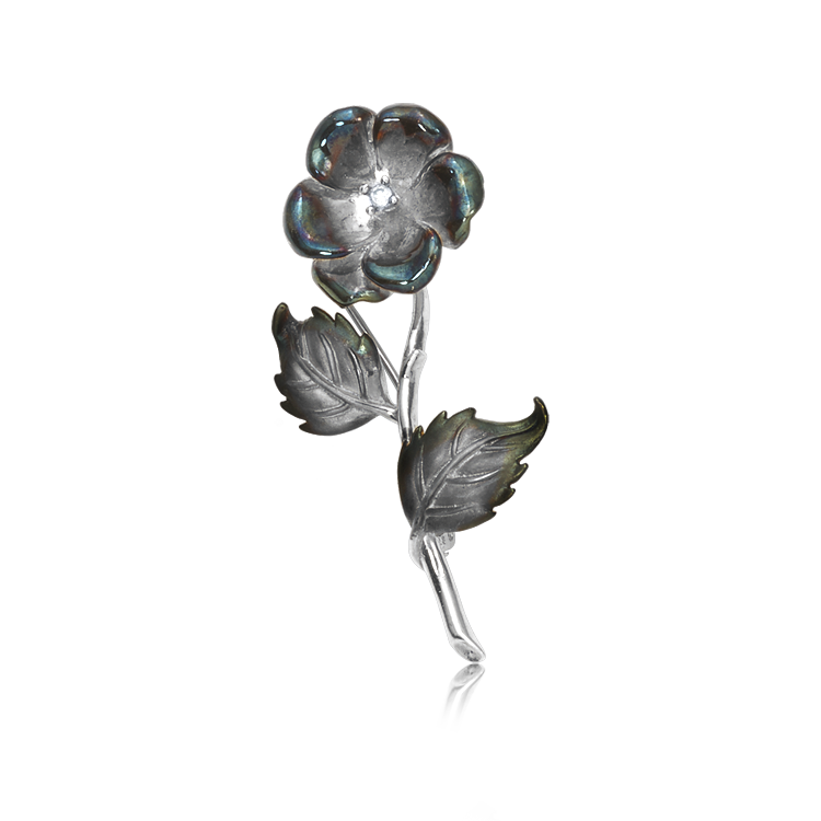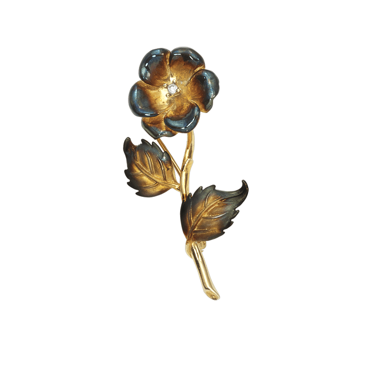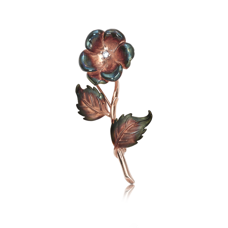 An elegant brooch that has a charming vintage style and a floral design that goes with everything. The ember tones and center sparkle complete the luxurious feel.